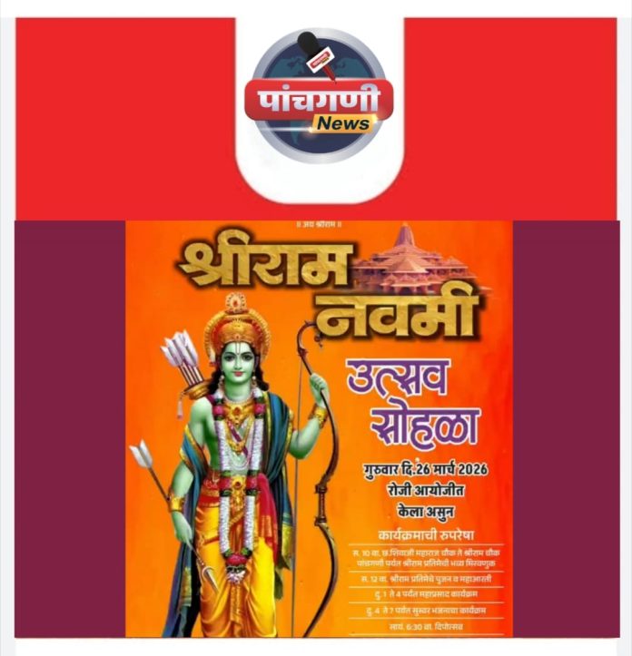 पाचगणी : प्रभू श्रीरामचंद्र यांच्या जन्मोत्सवाचे औचित्य साधून पाचगणी आणि परिसरातील विविध सामाजिक व क्रीडा मंडळांच्या वतीने गुरुवारी (दि. २६ मार्च २०२६) भव्य श्रीराम नवमी उत्सव सोहळ्याचे आयोजन करण्यात आले आहे. यानिमित्ताने शहरात भक्तीमय वातावरणात विविध धार्मिक आणि सांस्कृतिक कार्यक्रमांची रेलचेल पाहायला मिळणार असून, संपूर्ण परिसरातील भाविकांमध्ये मोठा उत्साह दिसून येत आहे.