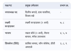 - माजी नगराध्यक्षा लक्ष्मीताई कऱ्हाडकर यांनी त्यांचा पहिला अर्ज प्रभाग क्र. ७ मधून ओबीसी आरक्षणावर दाखल केला होता. तर, आज त्यांनी आपला दुसरा फॉर्म प्रभाग क्र. ८ ‘ब’ सर्वसाधारण महिला गटातून भरला आहे.