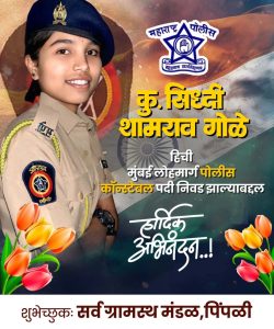 ​एका सामान्य ड्रायव्हरच्या मुलीने आपल्या जिद्दीच्या जोरावर पोलीस गणवेश परिधान करण्याचे स्वप्न साकार केल्याने पिंपळी गोळेवाडी परिसरात आनंदाचे वातावरण आहे. तिच्या या यशाबद्दल पिंपळी ग्रामस्थ, विविध युवक मंडळे आणि सामाजिक स्तरातून तिच्यावर अभिनंदनाचा वर्षाव होत आहे. ग्रामीण भागातील मुलींसमोर सिद्धीने एक नवा आदर्श निर्माण केला असून, जिद्द असेल तर परिस्थिती कधीही आड येत नाही, हेच तिने आपल्या कर्तृत्वातून सिद्ध करून दाखवले आहे.
