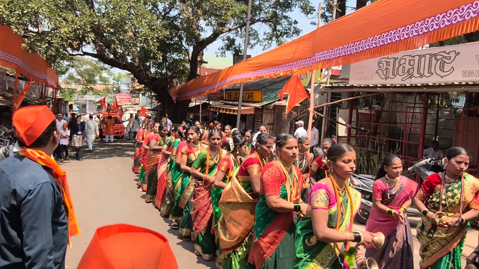 ​श्रीराम उत्सव समिती, श्रीराम चौक आणि परिसरातील विविध मंडळांच्या वतीने आयोजित करण्यात आलेली भव्य मिरवणूक या सोहळ्याचे मुख्य आकर्षण होती. सकाळी छत्रपती शिवाजी महाराज चौकातून मिरवणुकीला प्रारंभ झाला. मुख्य बाजारपेठ आणि एस. टी. स्टँडमार्गे निघालेल्या या मिरवणुकीत ढोल-ताशांच्या पथकांनी सादर केलेल्या गजनाने परिसर भारावून गेला होता. पारंपरिक वेशभूषेत सहभागी झालेल्या तरुणाईचा उत्साह ओसंडून वाहत होता, तर शेकडो महिलांनी हाती टाळ घेऊन भजनांच्या सुरावटीत रामनामाचा गजर केल्याने वातावरणात चैतन्य निर्माण झाले.